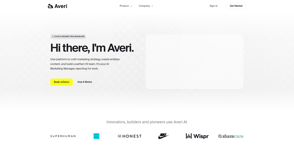 Averi is the AI marketing management platform and built-in vetted expert ecosystem. Imagine hiring the best marketing teammate you’ve ever had who is always on, is an expert on all-things-marketing, and has the best personal network, all for free.
