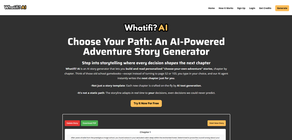 With every choice you make, the plot twists in unexpected ways, delivering limitless replay value. Whether you’re a casual reader seeking a quick thrill or a storyteller looking for fresh inspiration, Whatifi? AI opens the door to boundless creativity. Sign up to explore your first five chapters for free, and discover just how fun and engaging an AI-powered adventure can be.